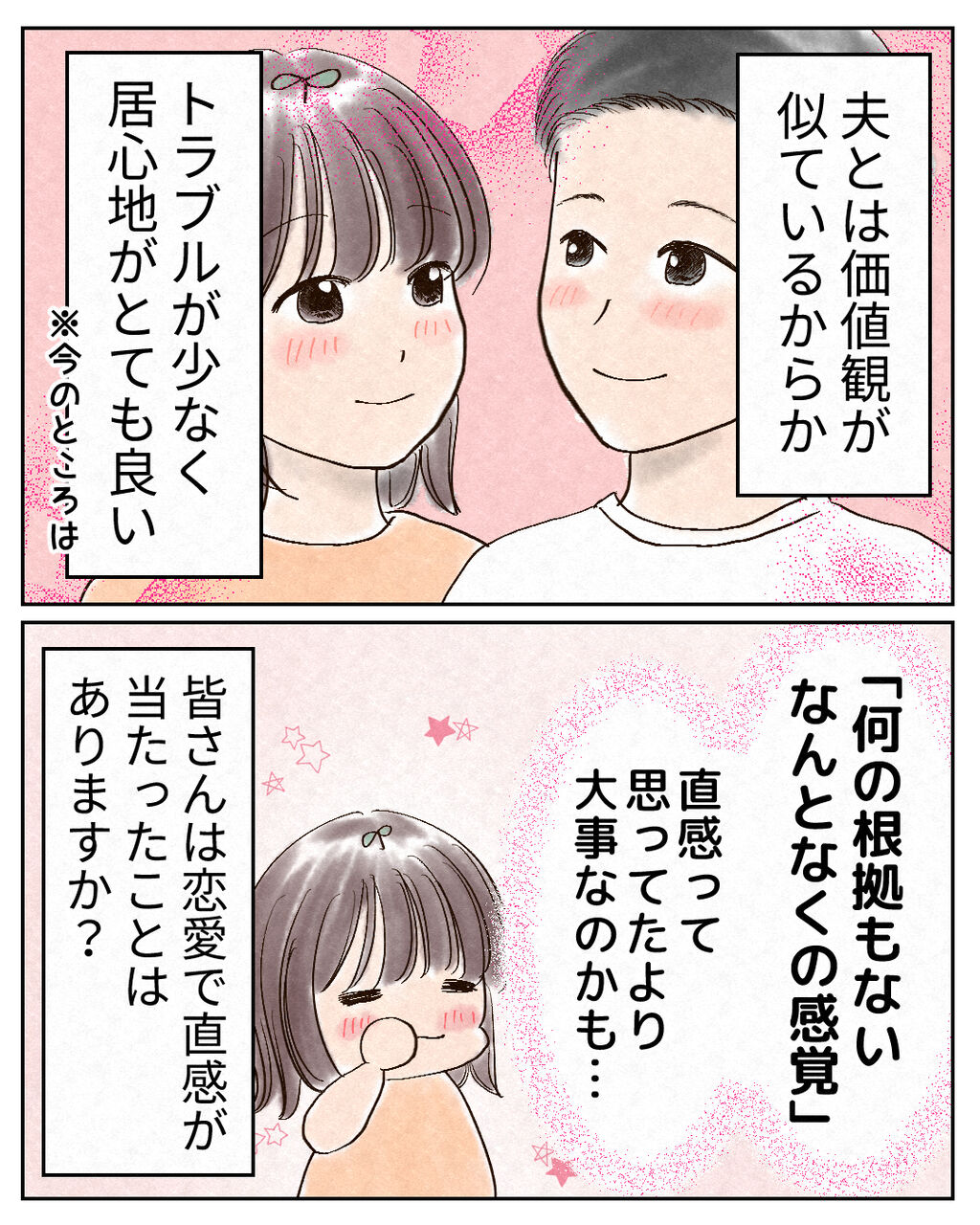 直感が当たった話〜恋愛編〜 2022年08月22日 10:48 突然ふと直感が働く時があります👀 元カレと付き合ってた時の直感は、順調に行っていた時だったのでとてもモヤモヤしたのを覚えています そして今の夫と出会った時の直感も他の人には感じたことのないものでした とても不思議な感覚だったのでよく覚えてます 直感って侮れないなぁと思いますメイキングはこちら 「短編エッセイ漫画」カテゴリの最新記事 < 前の記事次の記事 > コメント コメントフォーム 名前 コメント 記事の評価 リセット リセット 顔 星 情報を記憶 コメントを投稿する