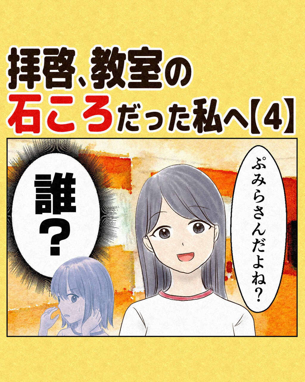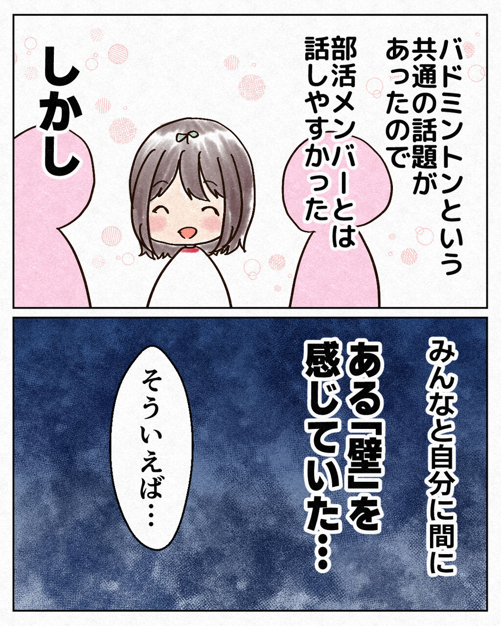 拝啓、教室の石ころだった私へ【4】 2022年12月19日 17:00 前回のお話はこちら 初めから読む 部活での人間関係はうまくいっていましたが、みんなと自分にある壁を感じていました…続きます!他の漫画を読む 「長編エッセイ漫画」カテゴリの最新記事 < 前の記事次の記事 > コメント コメントフォーム 名前 コメント 記事の評価 リセット リセット 顔 星 情報を記憶 コメントを投稿する
