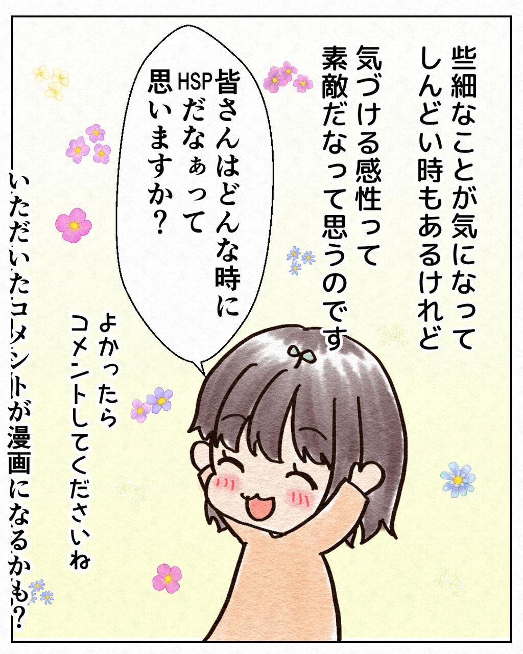 HSPだなあって思う瞬間まとめ【1】 2022年12月21日 17:58 あるある〜!というものはありましたか?🤗2はこちら HSPといっても感じ方は人それぞれなので漫画の内容が全てのHSPに当てはまるわけではないことをご理解いただけると幸いです😊こんな人もいるんだな〜!わかるな〜!私だけじゃなかった!そんなふうに思っていただけたら嬉しく思います♪読者登録するとLINEで更新通知が届きます♪最新話がすぐに読めます😆登録してくれたらめっちゃ嬉しいです✨ 「短編エッセイ漫画」カテゴリの最新記事 < 前の記事次の記事 > コメント コメント一覧 (14) 1. ここあ🥲 2022年12月21日 18:11 どれも分かります〜🥲💦 マルチタスクが苦手なのって、HSPさんの特徴でもあるんですね!自分の怠け癖だと思って悩んでたので安心しました☺️✨ありがとうございます🥰 そして前ももちろん素敵でしたが、新しいブログのヘッダー、温かい雰囲気で可愛くてとっても素敵です(*≧∀≦*)💕✨ 0 pumira_comic がしました 4. ぷみら 2022年12月22日 20:10 >>1 HSP診断テストに似たようなことが書いてあるのでそうなのかなーと思ってます!マルチタスクが苦手な原因はいろんなことが関係していると思うので、そうなんだーくらいに思っていただければと思います😊 ヘッダーを変えたことに気づいていただき嬉しいです!ありがとうございます🤗 0 pumira_comic がしました 2. YM 2022年12月21日 22:24 ぜ〜んぶ、あるあるでした! お友達と食事会に行って、メニューを選ぶのも苦手です。私が選んだメニューを食べたくないのでは?おいしくないのでは?と気になって食事どころじゃなくなるので、友達が選ぶメニューを、私も食べたいやつ!と言って、ほぼお任せしちゃいます。 マルチタスクも苦手で、能力が低い、仕事ができない人間と自分を否定してきました。 HSPの特性がいい面もあると受け入れるように、自己否定をやめれるようになりたいです。 0 pumira_comic がしました 5. ぷみら 2022年12月22日 20:13 >>2 なんとなくわかる気がします🤔自分の選択に自信がなくて相手と同じだと安心しちゃうことが私はありますー>< 自分のいい面も悪い面も少しずつ受け入れていきたいですね😊 0 pumira_comic がしました 3. とろろ 2022年12月21日 22:45 反応が気になるが特に共感しました。 私が行きたいところは私だけで行けば、相手の反応にストレスを感じなくていいし、と思って行動してたらプロのお一人様になりつつあります🤣 私の場合、マルチタスクが苦手というより、直前になってあれこれ言われるのが嫌です。 早めに言ってよって💦 私のあるある ①「お好きな席どうぞ」でみんなの距離感とか配置とか気にして席を選びがち (でも自分はトナラーの被害にある確率高し!) ②点滴や目薬など異物を入れると、味や風味が分かる ③音とかニオイとか光とかに敏感で情報過多になり疲れる ④何か伝える時、事前にシミュレーションしまくり ⑤何か伝えた後、事後反省会しまくり 0 pumira_comic がしました 6. ぷみら 2022年12月22日 20:15 >>3 1人で行くと自分が好きなように行動できるのがメリットですよね!😊 直前に言われるの私もめっちゃ嫌です!予定を崩されるとめっちゃテンションが下がりますー>< あるある教えていただきありがとうございます!✨特に④⑤にめちゃ共感しました😂 0 pumira_comic がしました 7. 匿名 2023年01月04日 08:24 初めて読みました。 私、これです。ぴったりはまりました。 0 pumira_comic がしました 11. ぷみら 2023年01月05日 18:05 >>7 共感していただき嬉しいです😊ありがとうございます✨ 0 pumira_comic がしました 8. 中嶋智恵子 2023年01月04日 08:59 わかります! 私も誰かとでかけると、その人の反応ばかり気になって疲れはててしまいます。 帰ってから寝込むくらい😢 だから一人が気楽です。 少し寂しいときもあるけれど、一人が良い。 0 pumira_comic がしました 12. ぷみら 2023年01月05日 18:06 >>8 相手の反応が気になってめっちゃ疲れますよね…!わかります🥺✨ 私も寝込む時ありますー! 0 pumira_comic がしました 9. こりん 2023年01月04日 09:18 どんなに楽しい人と楽しくしてても、気疲れがひどくて帰りたくなる… 0 pumira_comic がしました 13. ぷみら 2023年01月05日 18:07 >>9 そうなんですよね…!楽しくても疲れはすごいんですよね…🥺 0 pumira_comic がしました 10. なまえがなし子 2023年01月04日 10:38 皆様のコメントも読ませて頂きました。 どれもよく分かります。 私もそうかな、なんて思いました。 1人が楽です😊 0 pumira_comic がしました 14. ぷみら 2023年01月05日 18:07 >>10 1人の時はホッとしますよね😊 0 pumira_comic がしました コメントフォーム 名前 コメント 記事の評価 リセット リセット 顔 星 情報を記憶 コメントを投稿する