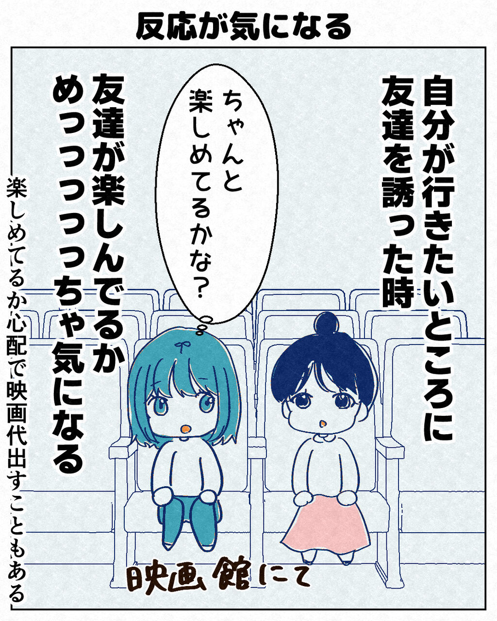 お友達と食事会に行って、メニューを選ぶのも苦手です。私が選んだメニューを食べたくないのでは?おいしくないのでは?と気になって食事どころじゃなくなるので、友達が選ぶメニューを、私も食べたいやつ!と言って、ほぼお任せしちゃいます。