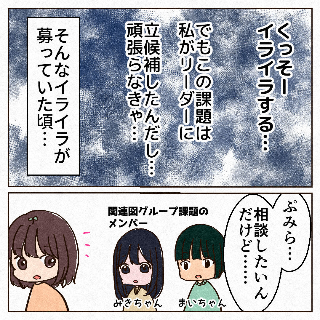 裏リーダーが辛くて泣いた話【2】 2023年01月04日 18:00 関連図のグループ課題が気になりつつも自分のリーダー業務でいっぱいいっぱいでした…続きはこちら 他の漫画を読む 「長編エッセイ漫画」カテゴリの最新記事 < 前の記事次の記事 > コメント コメントフォーム 名前 コメント 記事の評価 リセット リセット 顔 星 情報を記憶 コメントを投稿する