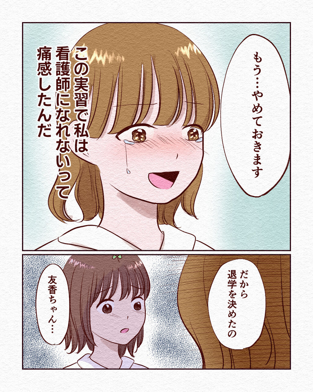 採血実習で友達が退学した話【13】 2023年03月21日 17:43 前回のお話はこちら 初めから読む 友香ちゃんは私以上にいろいろ葛藤していたんだろうなと、改めて思いました…続きはこちら ※身バレ防止のため一部フィクションが追加されています 読者登録するとLINEで更新通知が届きます♪最新話がすぐに読めます😆登録してくれたらめっちゃ嬉しいです✨ 「長編エッセイ漫画」カテゴリの最新記事 < 前の記事次の記事 > コメント コメントフォーム 名前 コメント 記事の評価 リセット リセット 顔 星 情報を記憶 コメントを投稿する