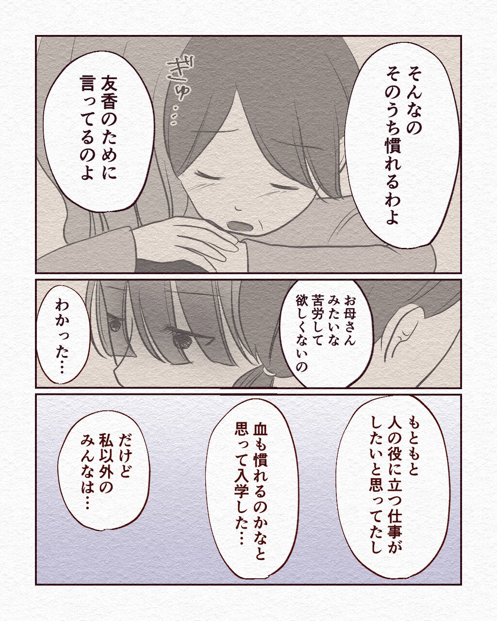 採血実習で友達が退学した話【14】 2023年03月22日 17:54 前回のお話はこちら 初めから読む お母さんの想いも、友香ちゃんの想いもなんとなくわかるような気がしますとても難しい判断だなぁと、描いていて思いました🥹続きはこちら ※身バレ防止のため一部フィクションが追加されています 読者登録するとLINEで更新通知が届きます♪最新話がすぐに読めます😆登録してくれたらめっちゃ嬉しいです✨ 「長編エッセイ漫画」カテゴリの最新記事 < 前の記事次の記事 > コメント コメントフォーム 名前 コメント 記事の評価 リセット リセット 顔 星 情報を記憶 コメントを投稿する
