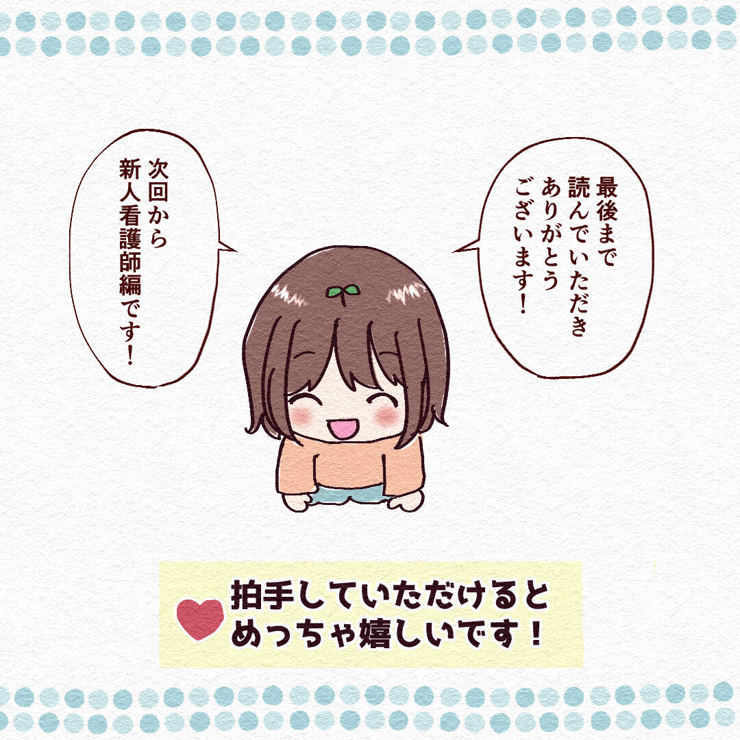 採血実習で友達が退学した話【16】最終回 2023年03月24日 18:14 前回のお話はこちら 初めから読む 最後まで読んでいただきありがとうございました✨友香ちゃんは今も理学療法士をしていて、よかったなーと思います☺️次回からは新人看護師編です! 新人看護師編はこちら ※身バレ防止のため一部フィクションが追加されています 読者登録するとLINEで更新通知が届きます♪最新話がすぐに読めます😆登録してくれたらめっちゃ嬉しいです✨ 「長編エッセイ漫画」カテゴリの最新記事 < 前の記事次の記事 > コメント コメント一覧 (4) 1. きょんたん 2023年03月24日 23:20 同級生が、退学を責められたら辛いなあって思ってたので、責められなくって良かったですー! 0 pumira_comic がしました 3. ぷみら 2023年03月27日 18:10 >>1 私も責められなくて良かったと思います〜!🥹✨ 0 pumira_comic がしました 2. ゆうさい 2023年03月27日 00:25 自分のやりたい事を探すのって難しよネ!友達がそれに向かって 歩んで目標を見つけたのはエライね!若いんだからダメだったらまた探せるからね!ぷみらさんそして友達に幸あれ!ぷみらさんは無理は禁止ネ!笑! 0 pumira_comic がしました 4. ぷみら 2023年03月27日 18:11 >>2 いろんな道を私も探していきたいと思います😊お気遣いありがとうございます✨☺️ 0 pumira_comic がしました コメントフォーム 名前 コメント 記事の評価 リセット リセット 顔 星 情報を記憶 コメントを投稿する