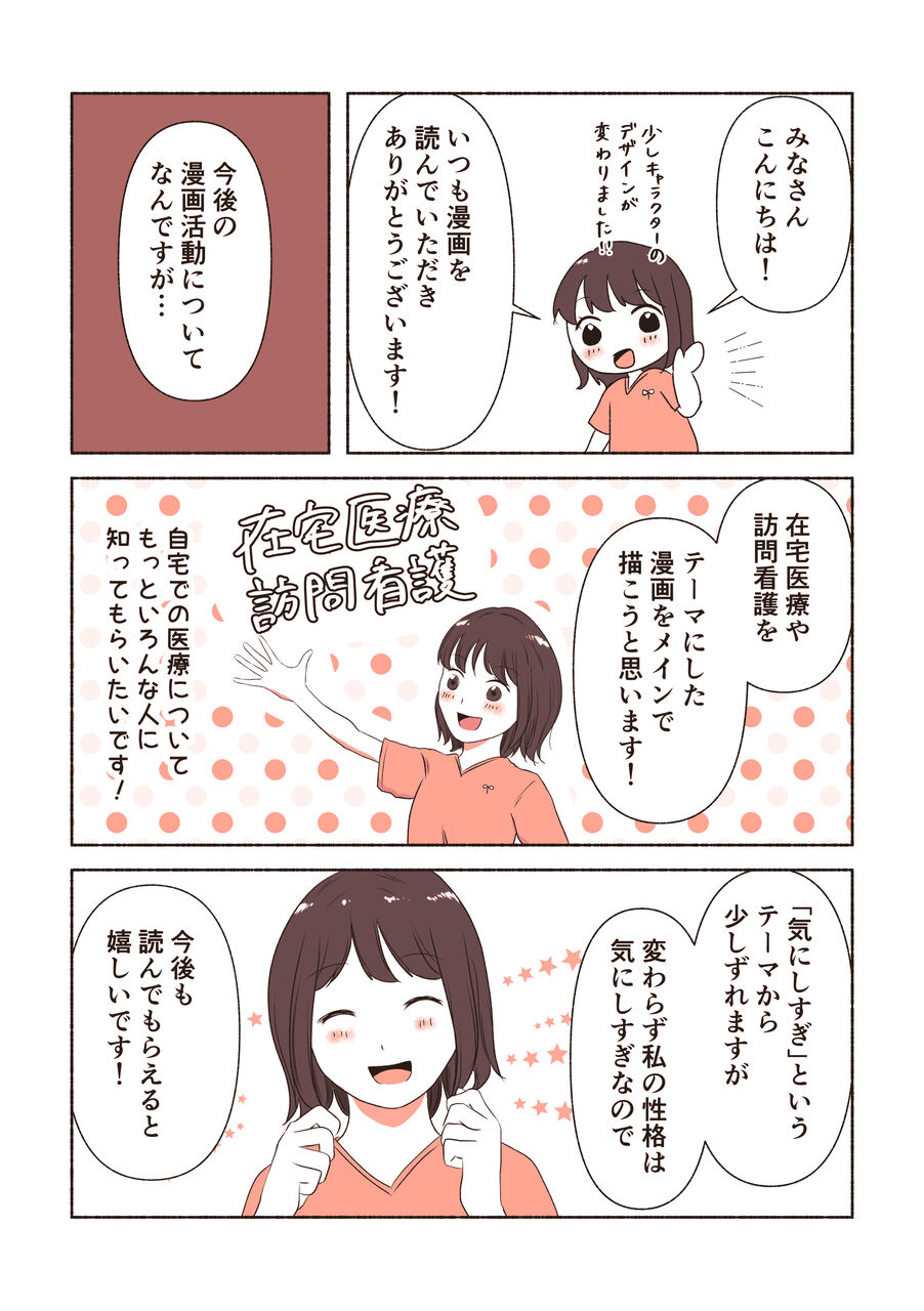 私の体験談をもとに、在宅医療、訪問看護の患者さんとのお話や現場の話などをマンガを通してお伝えしたいきたいと思っています☺️