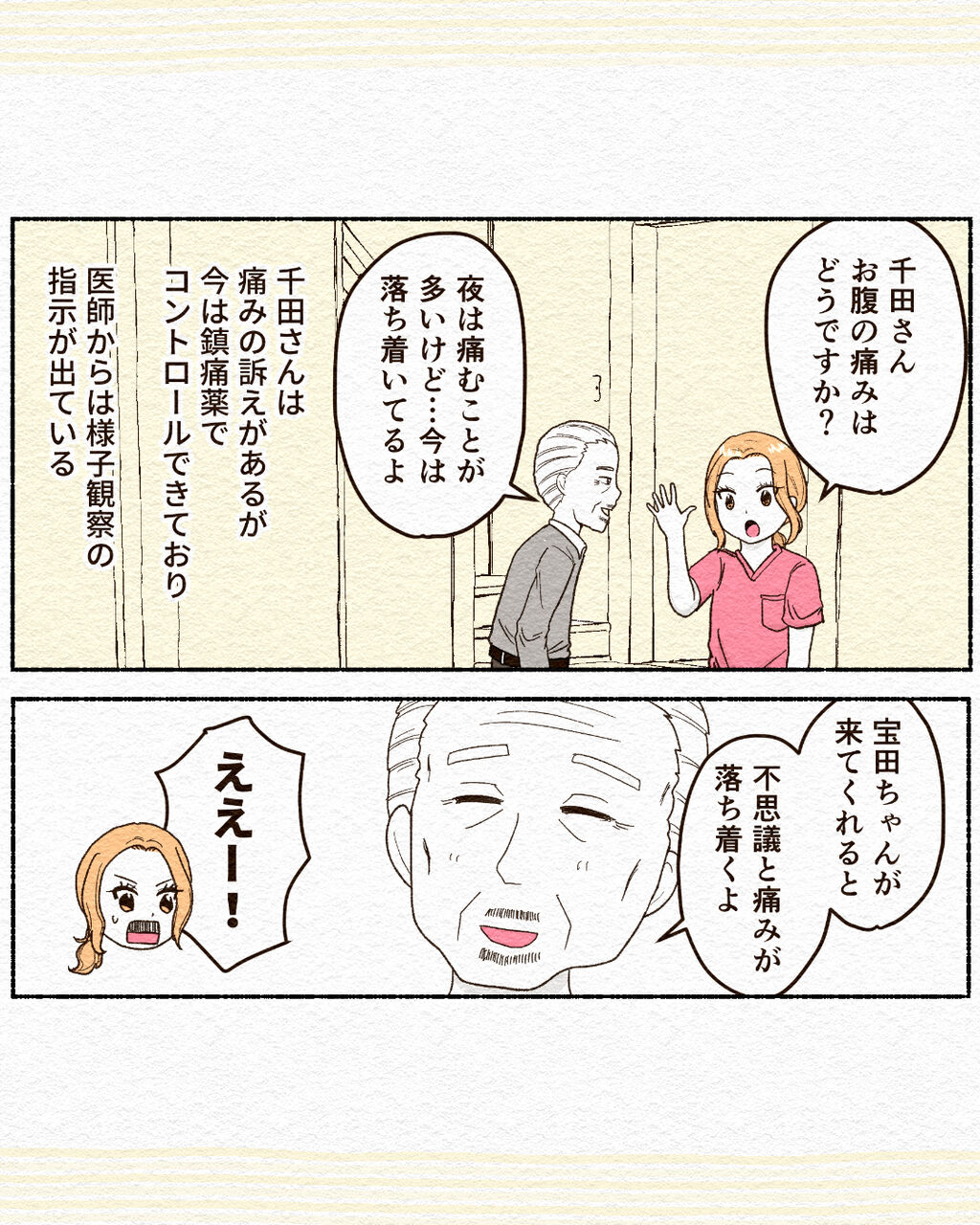 薬で消えない痛みの謎①【訪問看護師ほーかんちゃん】 2024年10月21日 18:39 やっと訪問看護の話を更新できました!週3回更新していこうと思っていますよろしくお願いします!☺️続きはこちら 病棟看護師、天然お局様クラッシャー木似鳴子の漫画はこちら!他の看護師漫画はこちら 「訪問看護師ほーかんちゃん」カテゴリの最新記事 < 前の記事次の記事 > コメント コメントフォーム 名前 コメント 記事の評価 リセット リセット 顔 星 情報を記憶 コメントを投稿する